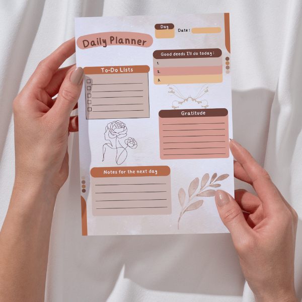 Start your day with intention, clarity, and calm. This elegant one-page daily planner helps you organize tasks, practice gratitude, and plan mindfully β all in a simple yet effective design.